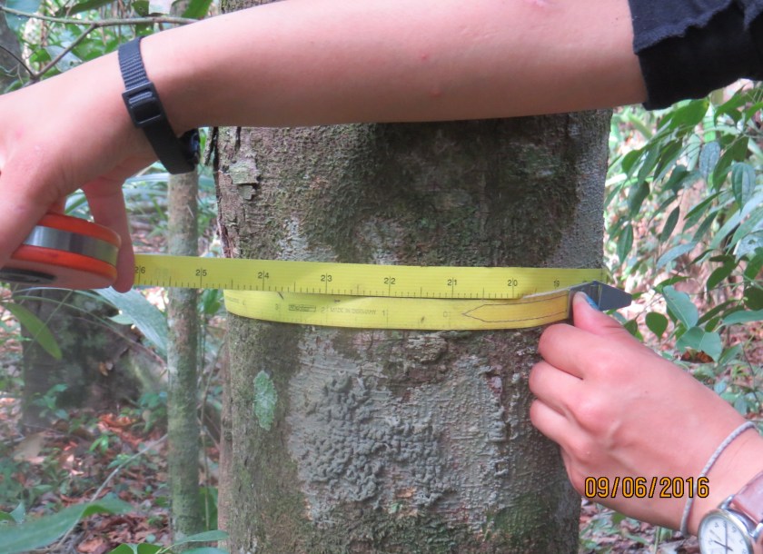Goals and methods – A goal of this research is to understand how forests of the Rio Bravo Conservation and Management Area (RBCMA) are changing. That will help us predict the future state of the forests, for conservation and management purposes. In 1991 we established four 1-hectare plots in old-growth forest in the RBCMA. Each plot is located at a different point along the topographic or soil gradient, including dry hill top; lower, moister slopes; deep, well-drained soil; and riparian (bordering river) sites. All trees ≥10 cm DBH (see text) were identified, mapped, measured for DBH, and marked with a tag uniquely numbered for each tree. In each plot we tagged, mapped, measured DBH (diameter at breast height), and identified to species all self-supporting, woody stems ≥ 10 cm DBH. We re-censused the plots in 2015-2017, to record recruitment of new stems to ≥ 10 cm DBH, mortality of previously recorded stems, and diameters of surviving stems.